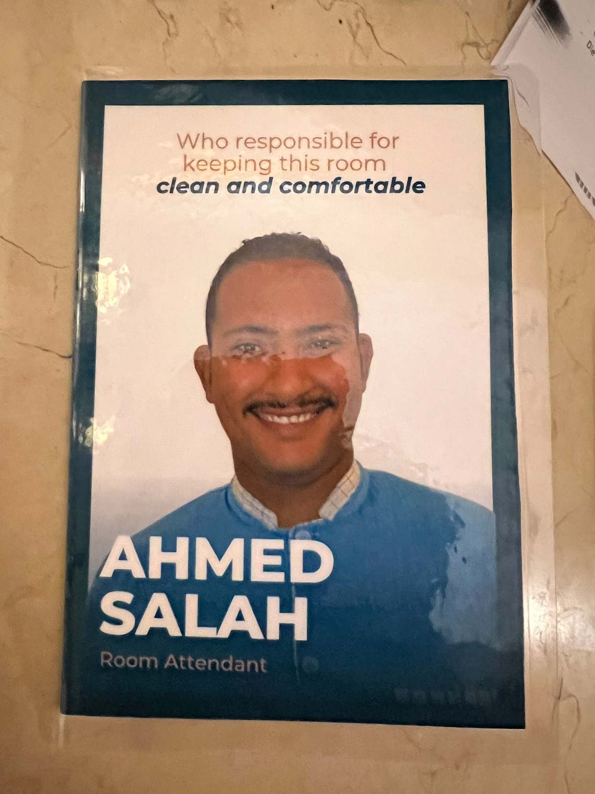 Lieben Dank, für Reinigung unseres Zimmers, lieber Ahmed!