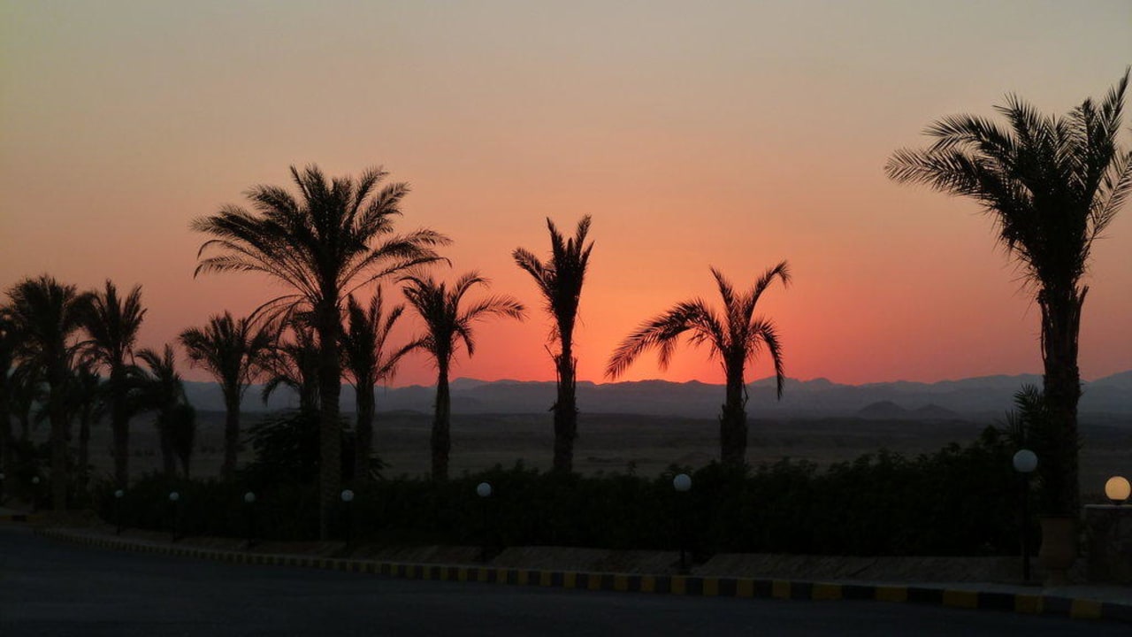 Sonnenuntergang vor dem Hotel