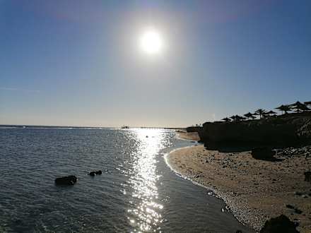 Bitte unbedingt Badeschuhe mitnehmen. Corallenriff ist direkt vorne am Strand und beim Reingehen wird es sehr steinig. Der Stand ansich ist ständig. Ist eine Morgenansicht