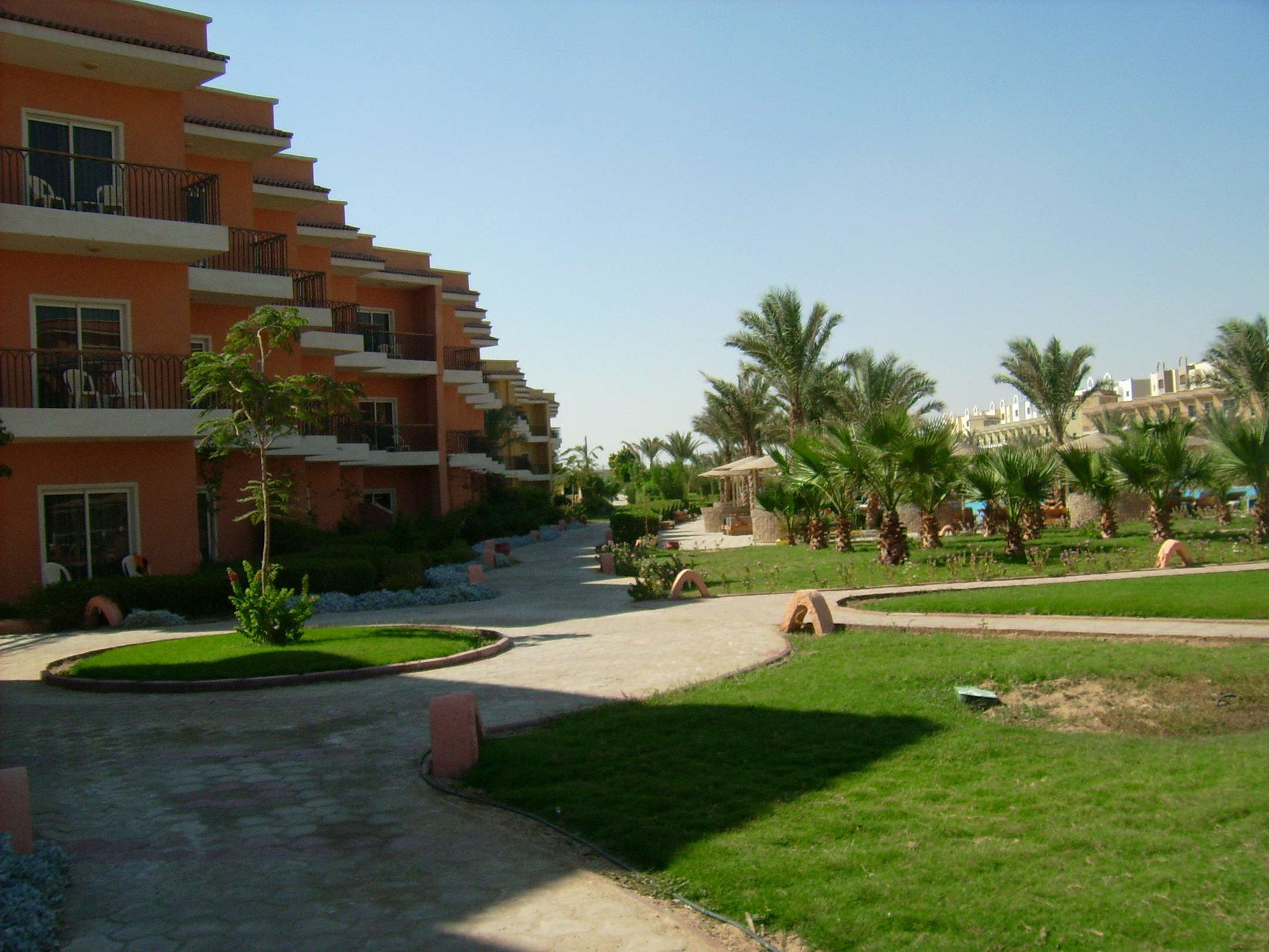 Hotelanlage, Blick auf Zimmer mit Balkon
