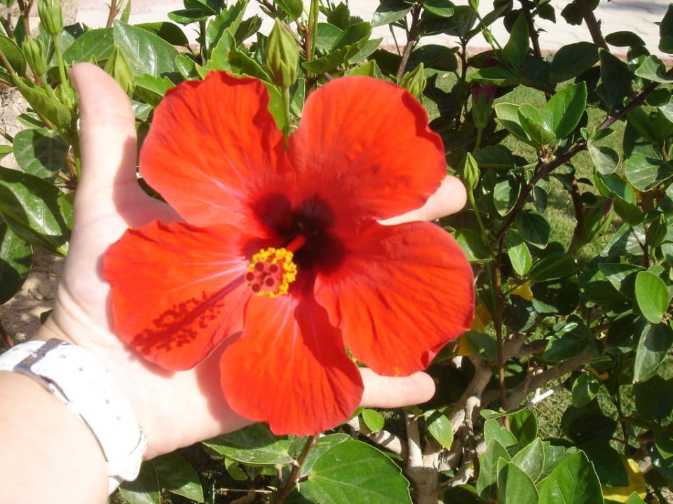 Blüten - so groß wie eine Hand! Täglich gibt es Hibiskus-Saft zu trinken!