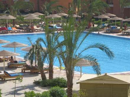 Widok z pokoju na duży basen