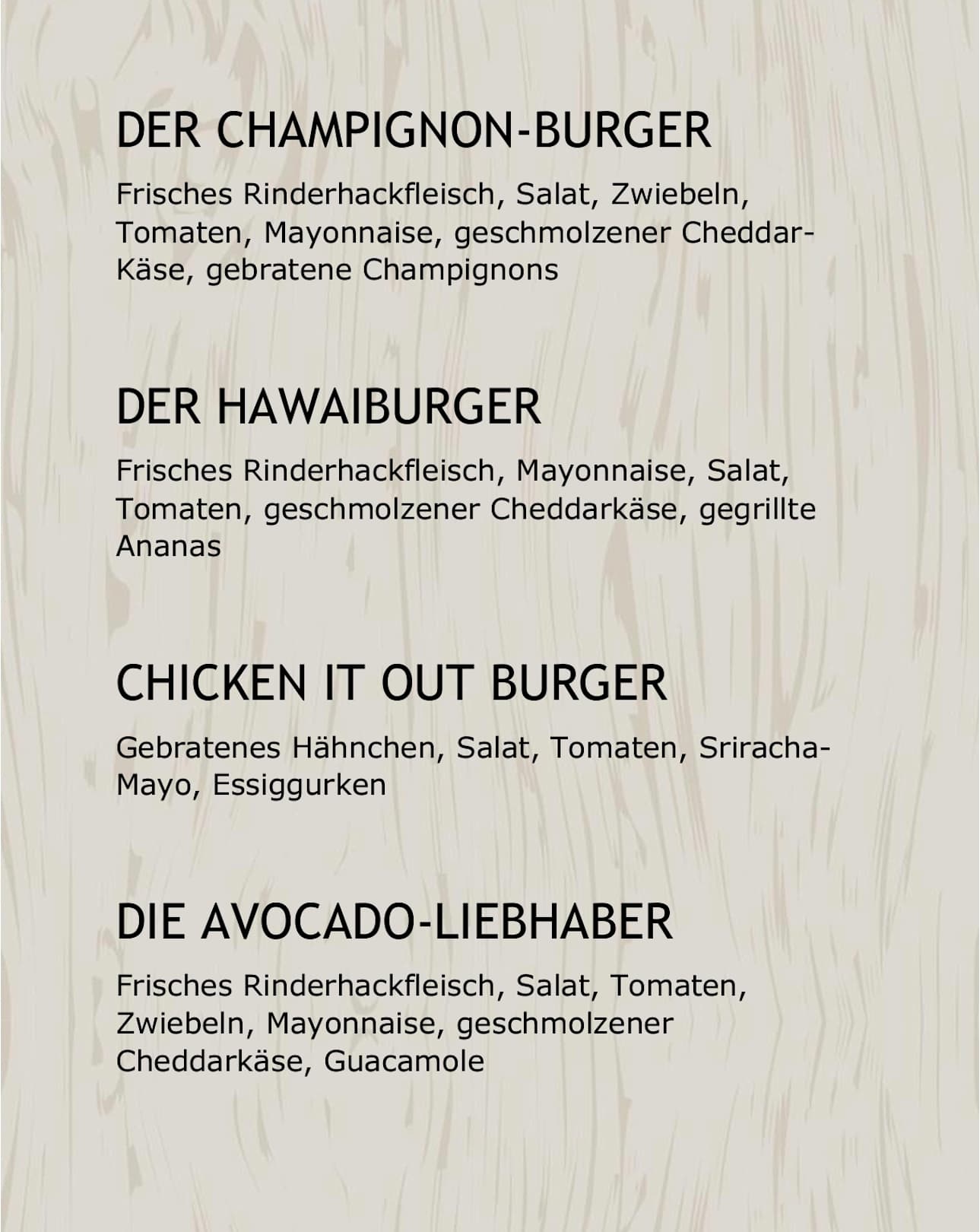 Menü À-la-carte-Restaurant Burger