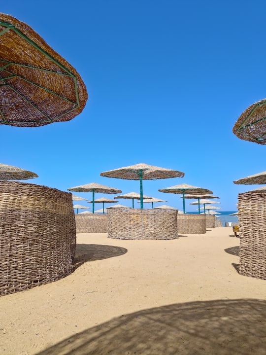 Strand mit Schirmen und Sichtschutz