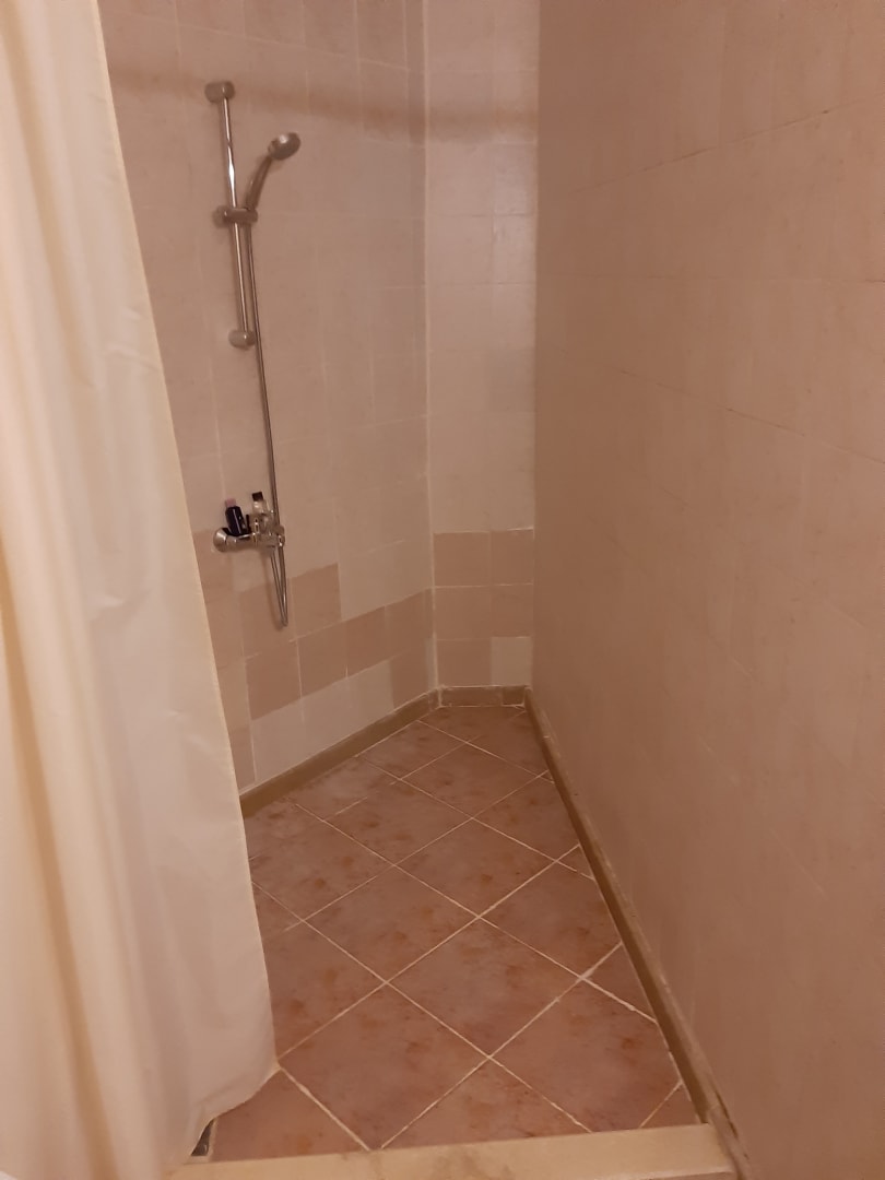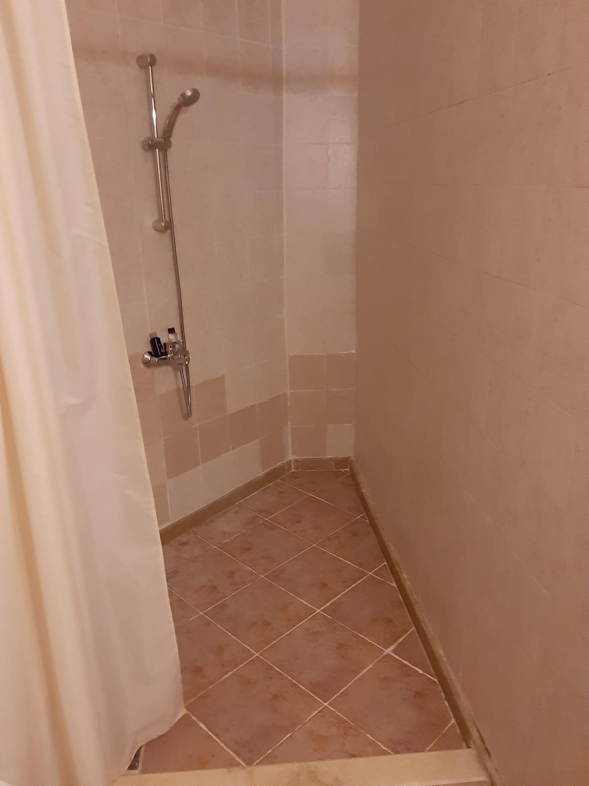 geräumige Dusche aber wie man sieht mit vielen Gebarsuchs- Spuren