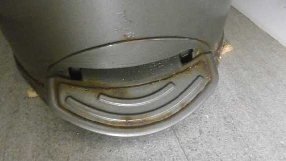 Total verrosteter Mülleimer der auf feuchten Lappen über Abflussieb stand
