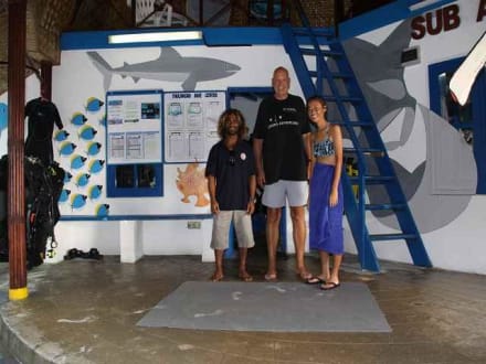 Die Dive Masters von Sub AquaInternationale Besetzung: Mousum (Malediven), Axel (Deutschland), Shinobu (Japan). Nicht im Bild: Monica (Schweiz)