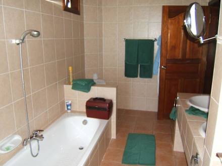 Badezimmer des Wasserbungalows von einer anderen Sicht