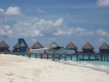 Ein Wasserflugzeug ist gelandet