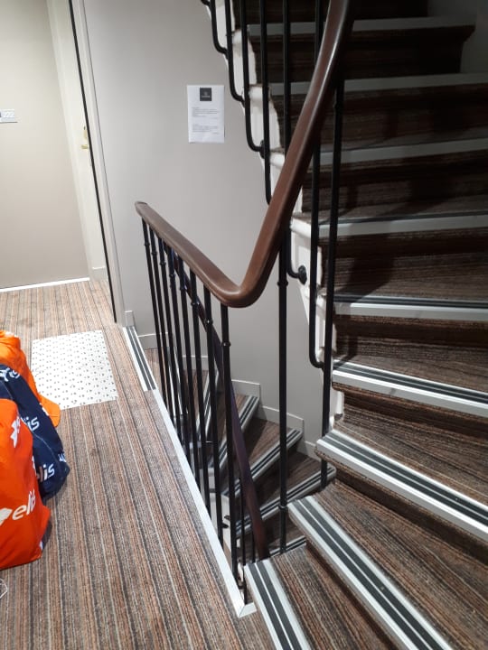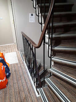Die steilen Treppen im Hotel. Links die Säcke die den ganzen Tag dort stehen.
