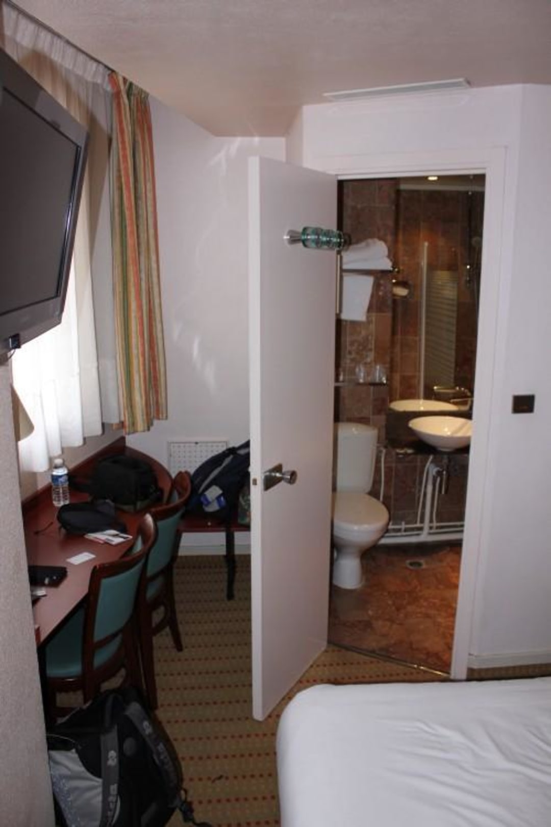 Sicht auf Ablage, Bad Eingang, und Bett