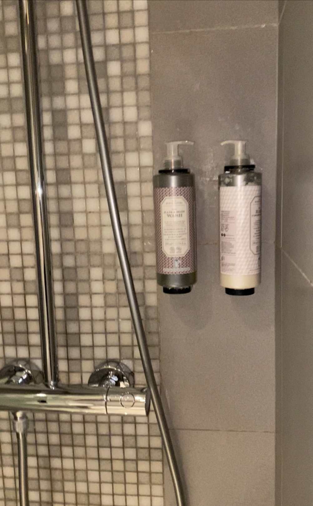 ZimmerBad klen ( Comfortzimmer zwei Betten) und dennoch sehr fein - mit Fön, Duschgel Kosmetikspiegel und- tüchern, Regenbrause