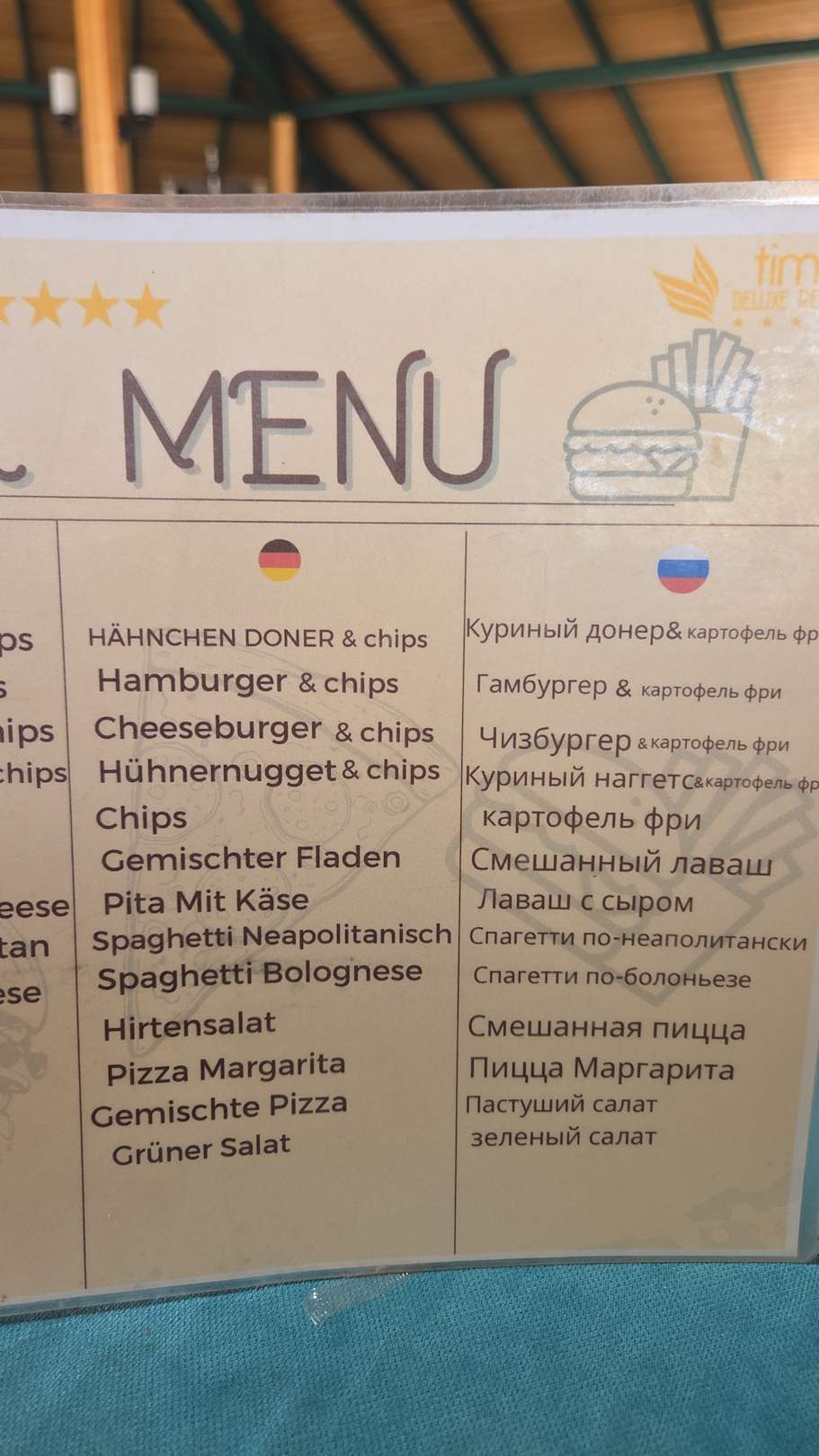 Menü am strandrestaurant