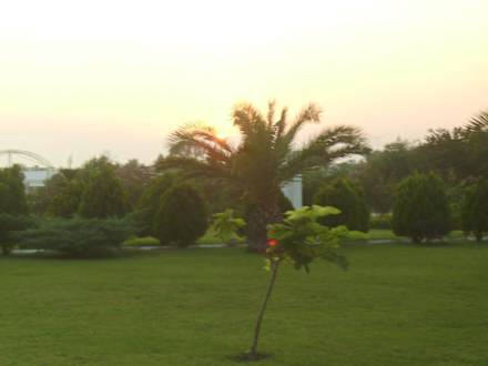 Территория отеля по дороге к морю, закат солнца