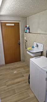Waschraum Waschbecken und Ausgang zum Überdachten Außenbereich / Grillbereich.