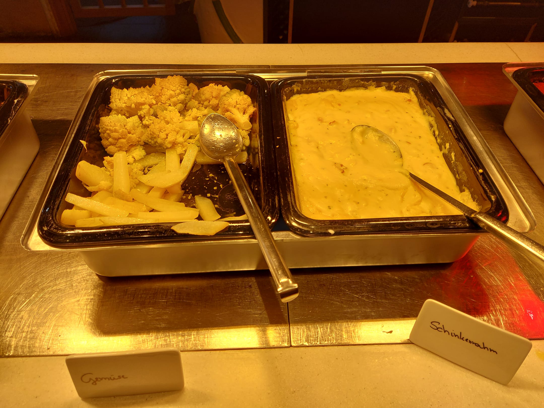 Diesmal gab des Romanesco und Kohlrabi als Gemüse ... für Kinder ... ??? Die Schinkenrahmsoße war oben schon gestockt und hat auch überhaupt nicht appetitlich ausgesehen.