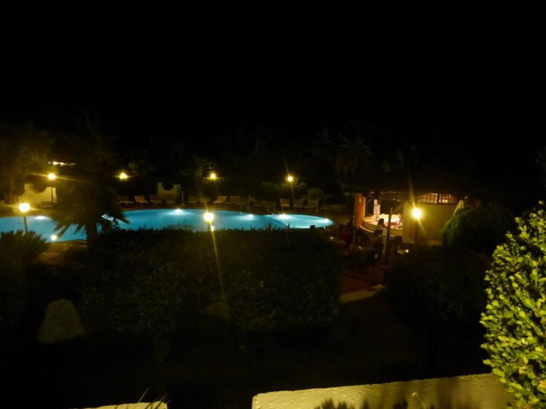Poolanlage am Abend