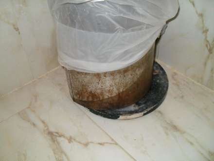 Verrosteter Abfalleimer im Bad
