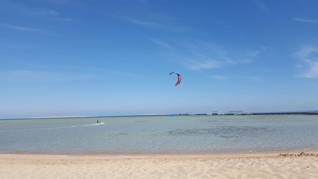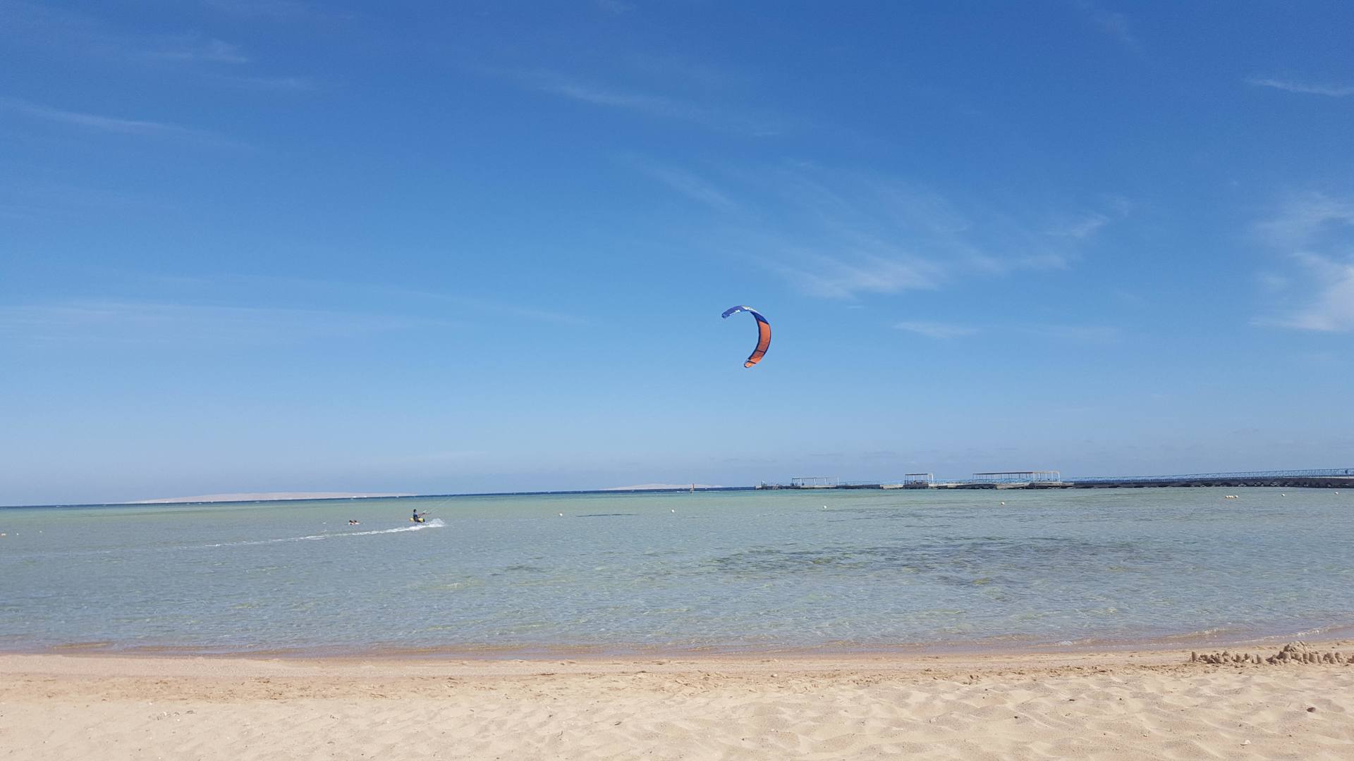 Kite-Surfen und Blick vom Strand aufs Meer