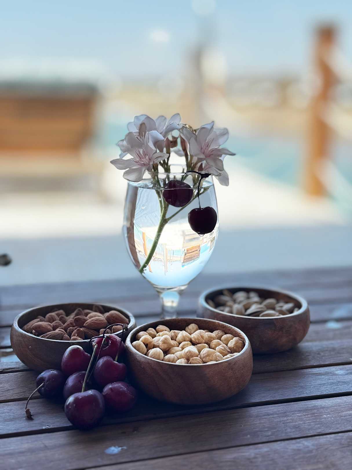 Nüsse frische Kirschen in Gazebo schlemmen