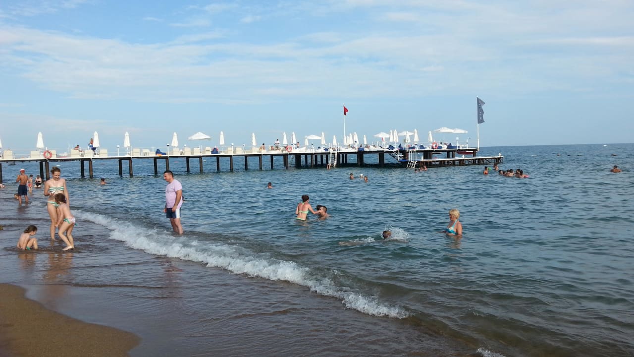 Strand mit Strandsteg zum Sonnen