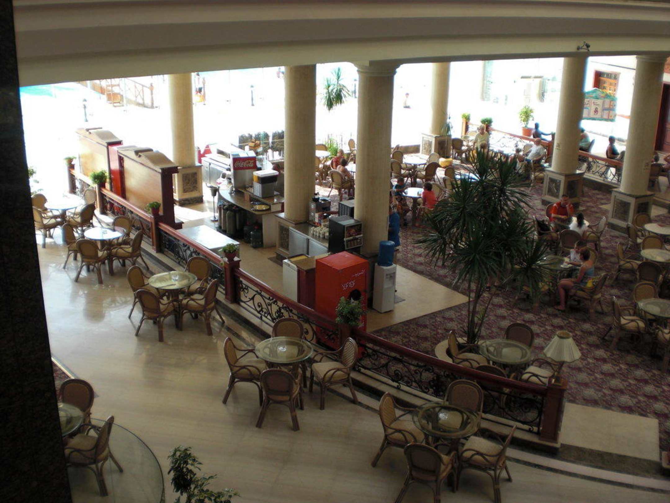 Blick vom einer oberen Hoteletage auf die Lobby