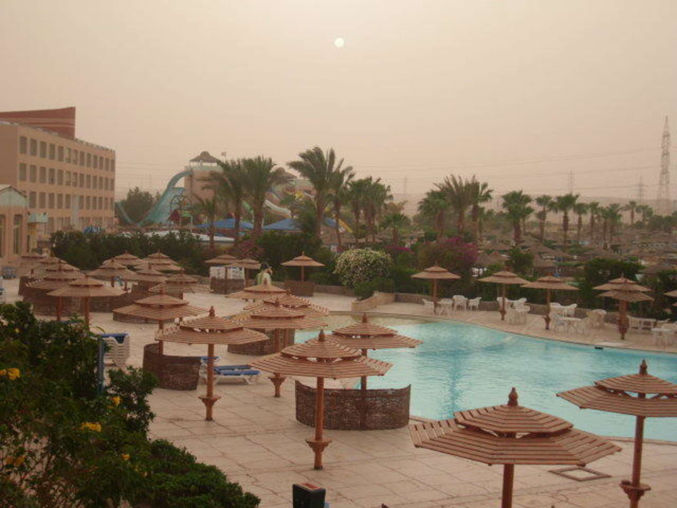 Poolanlage beim Sonnenuntergang