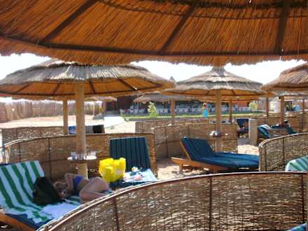 Liegen, Windschutz und Sonnenschirme