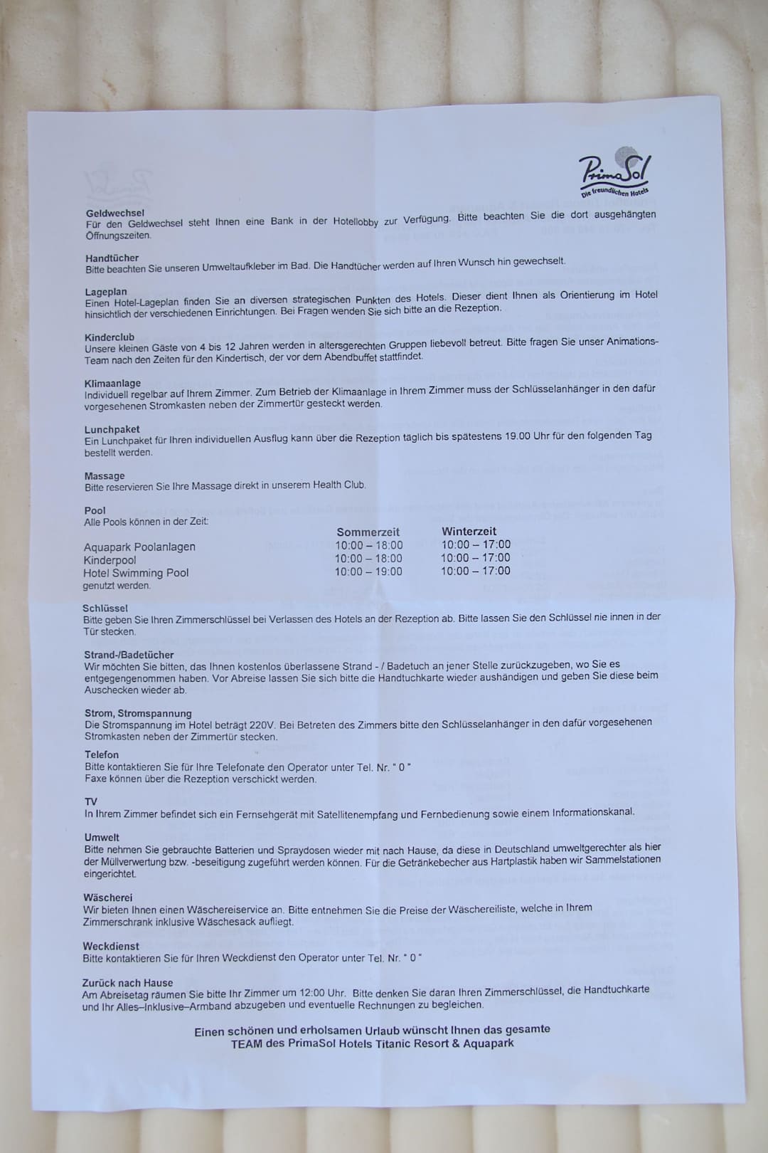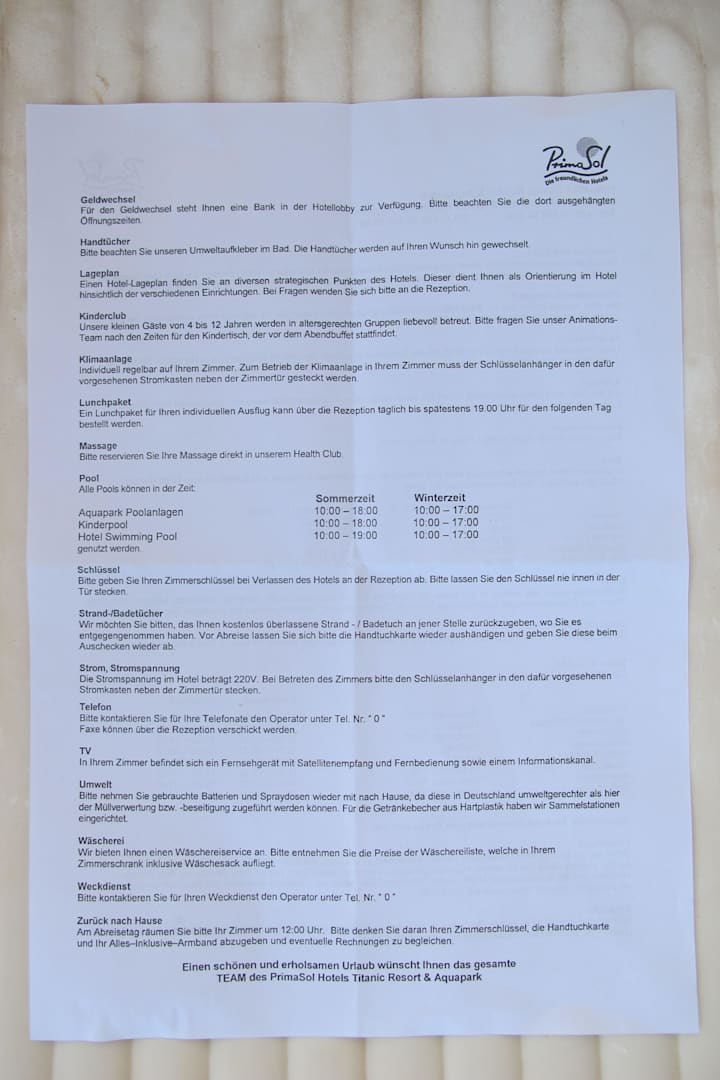 Essenszeiten etc.