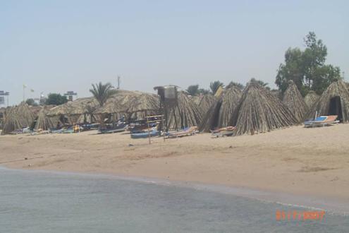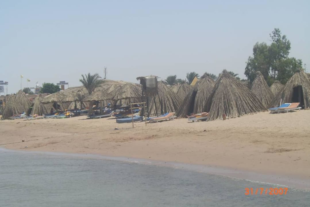 Die reizvollen Strohhütten und der sandige Strand in Richtung Hotel Jasmin