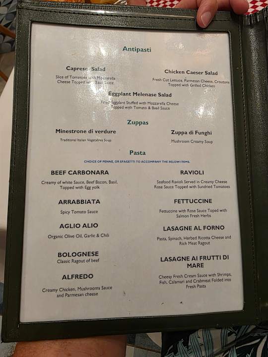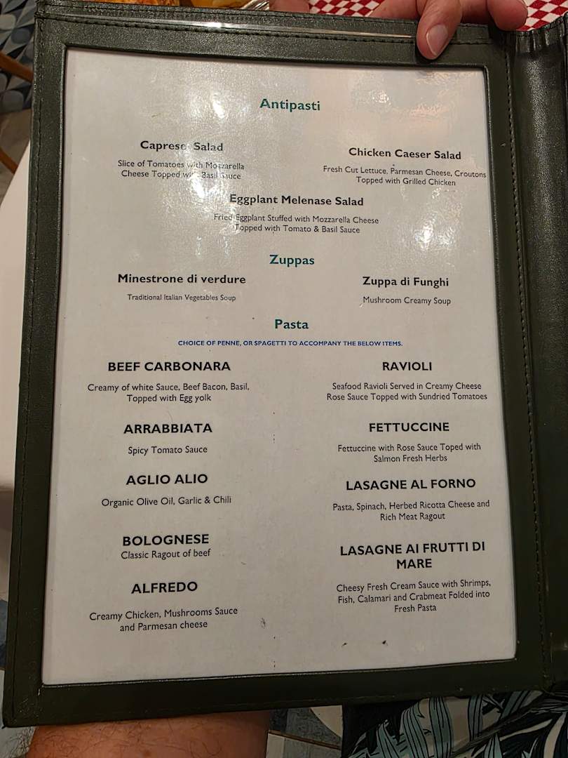 Speisekarte vom Italiener