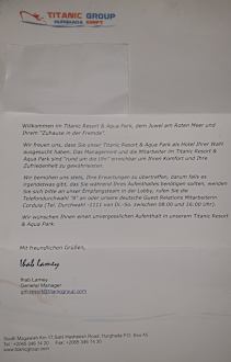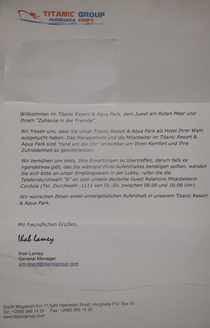 Willkommensschreiben des Hotels