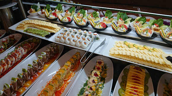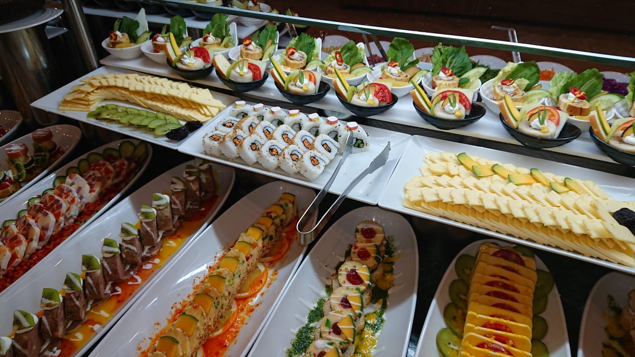 GastroDas Buffet ist jeden Tag und zu jeder Mahlzeit gefüllt mit leckeren und großartig dekorierten Speisen