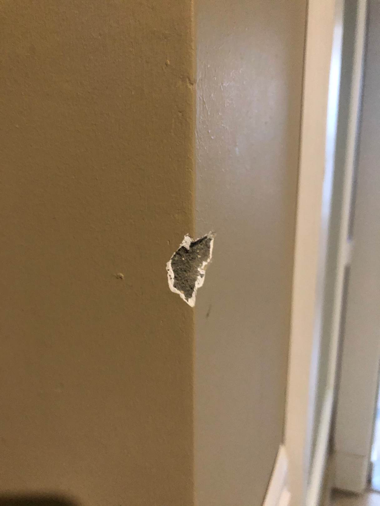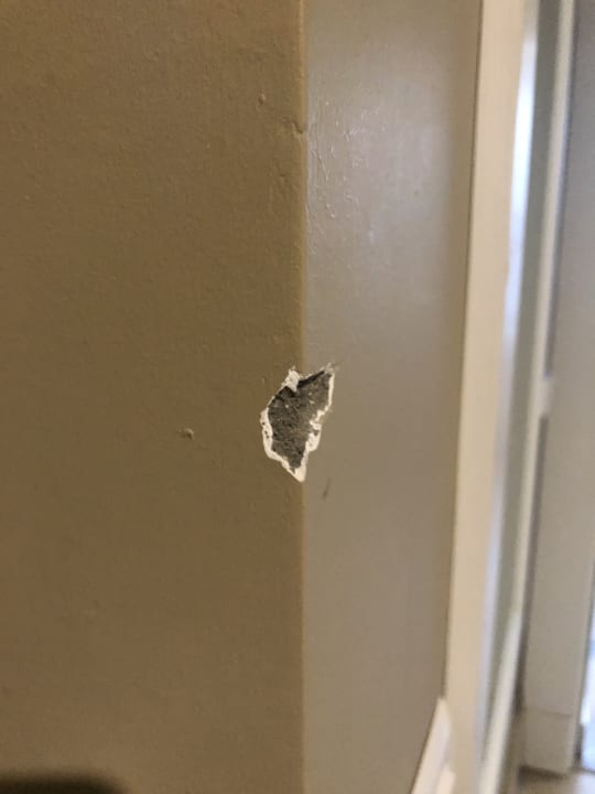 Ausgebrochene Kanten an der Wand im Zimmer