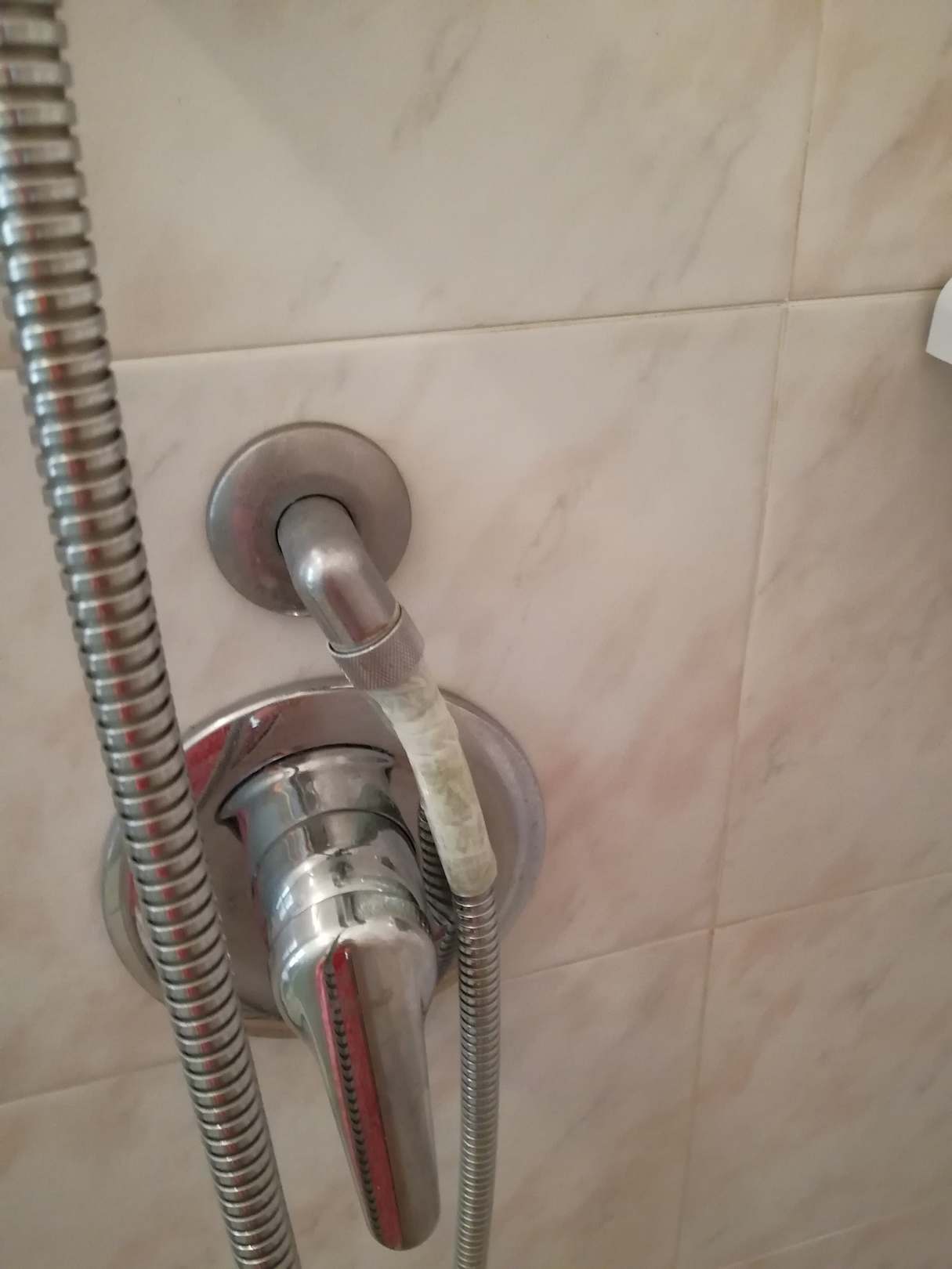 Duschschlauch der in alle Richtungen spritzte