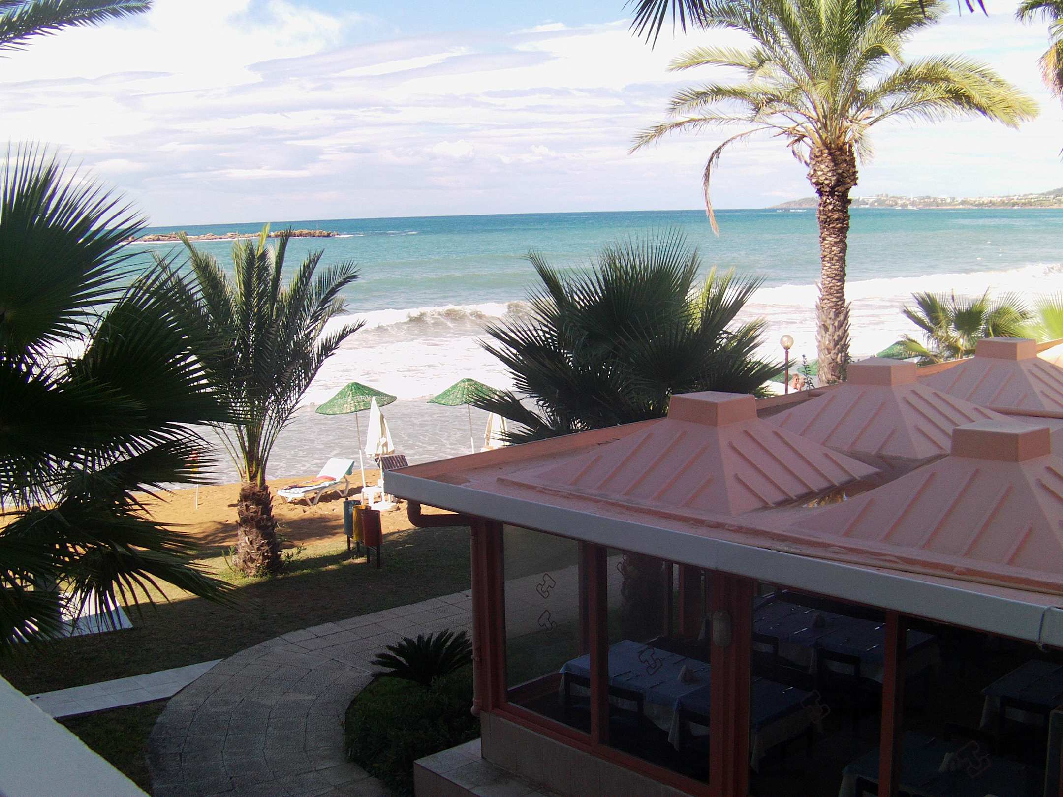 Blick auf Meer und Restaurant