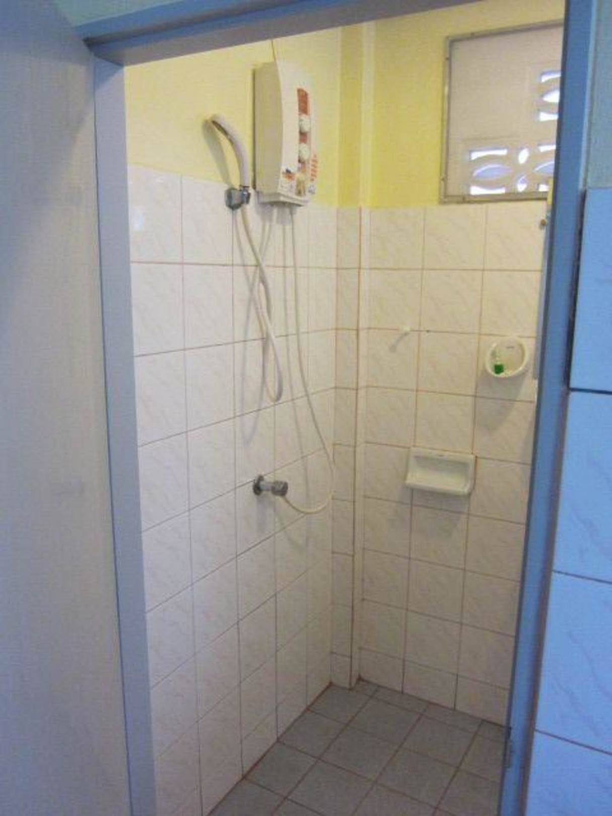 Familienbungalow - Duschbad mit Blick auf die Dusche von der Küche aus