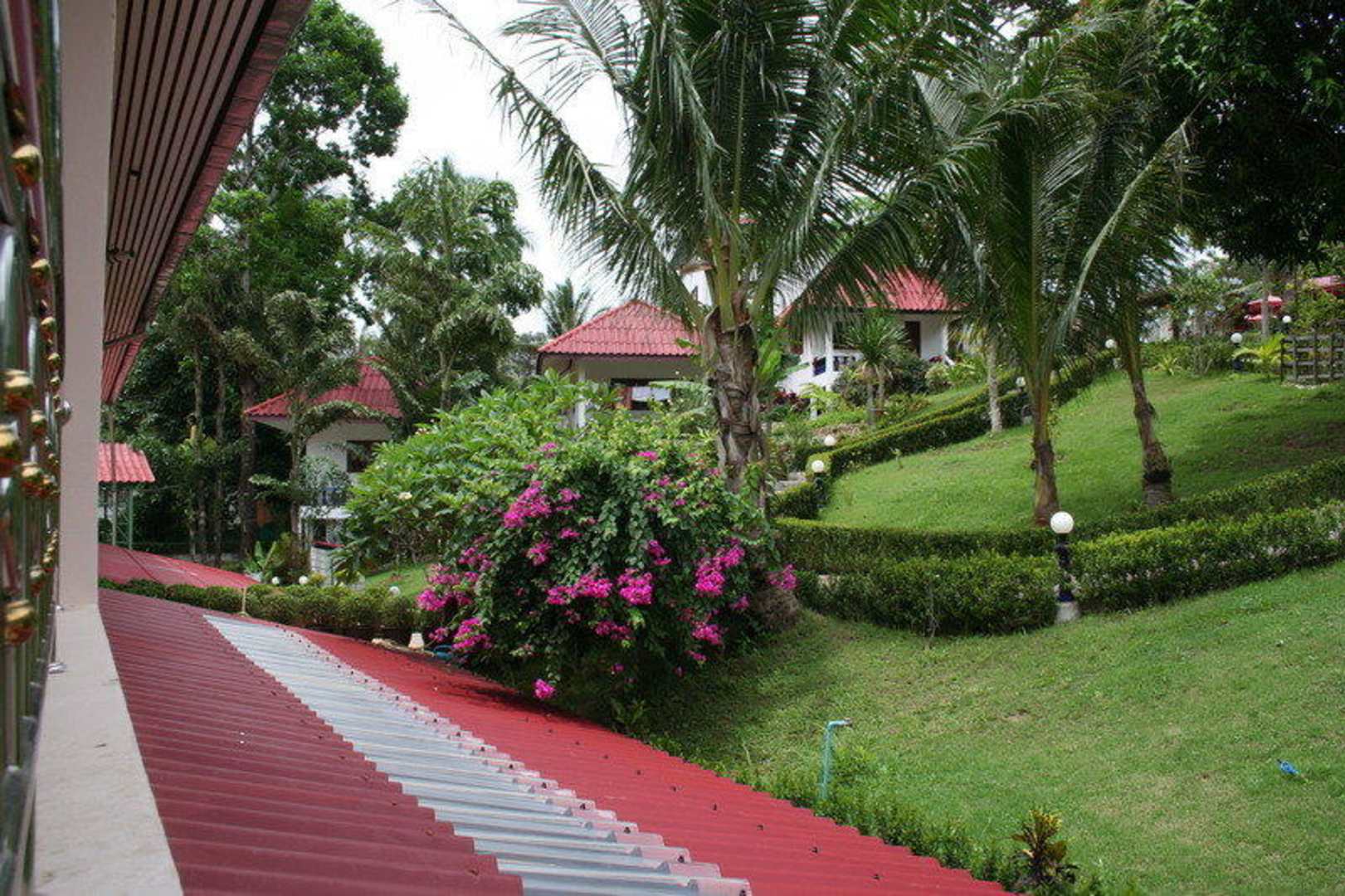 Grüner und ruhiger Bereich hinter dem Hotel