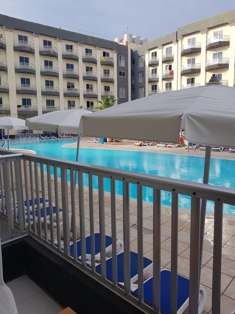 Blick vom Balkon Zimmer T 106 Leider wurde der Balkon während unserer 2 Wochen Aufenthalt nicht gereinigt. Wir hatten am Ende über 50 tote Fliegen auf dem Boden, die wir erschlagen haben.