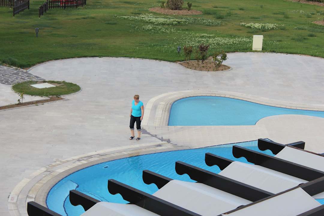 Blick vom Zimmer zum Pool