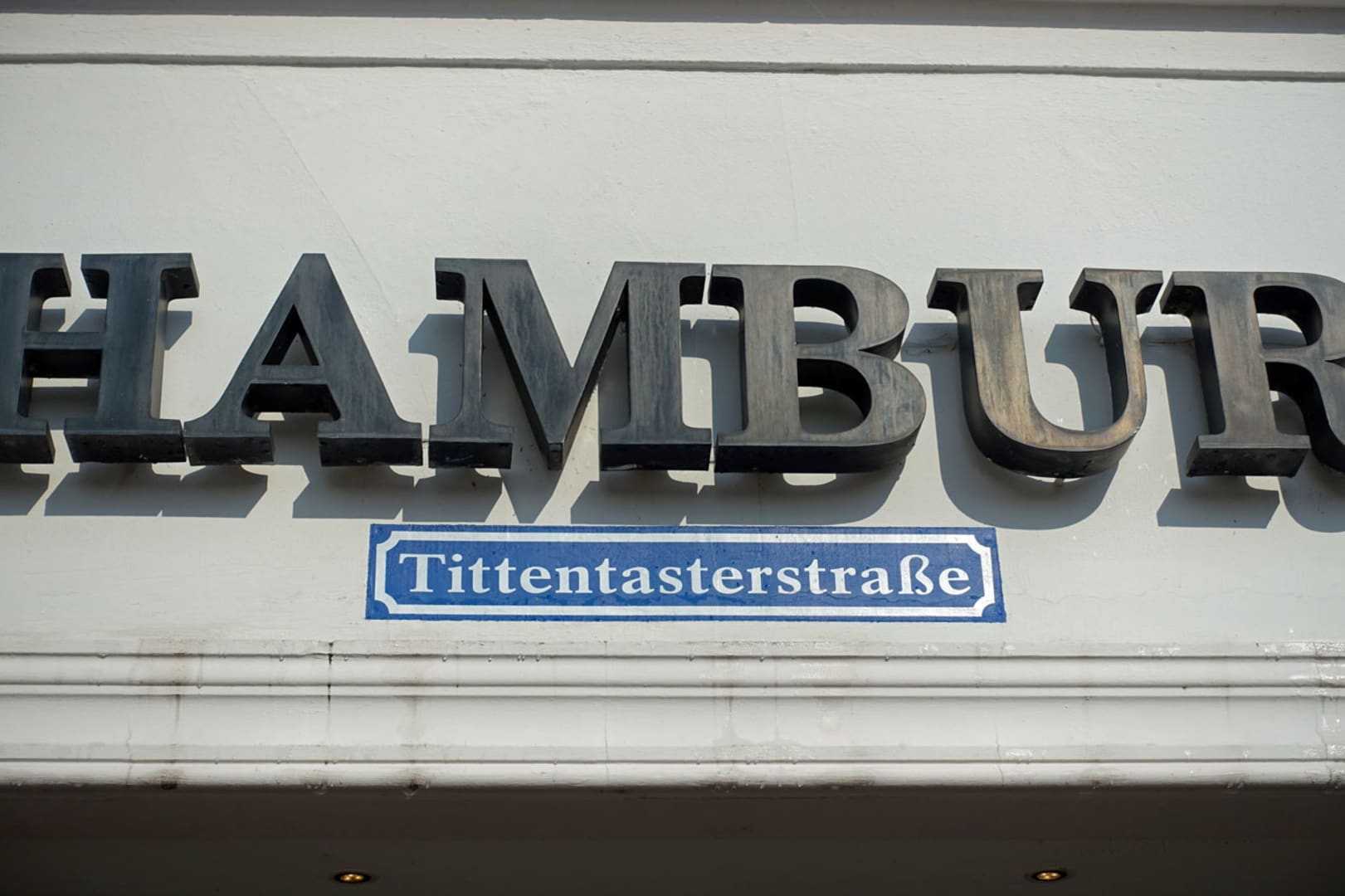 Straßenschild an der Außenfront des Hotels