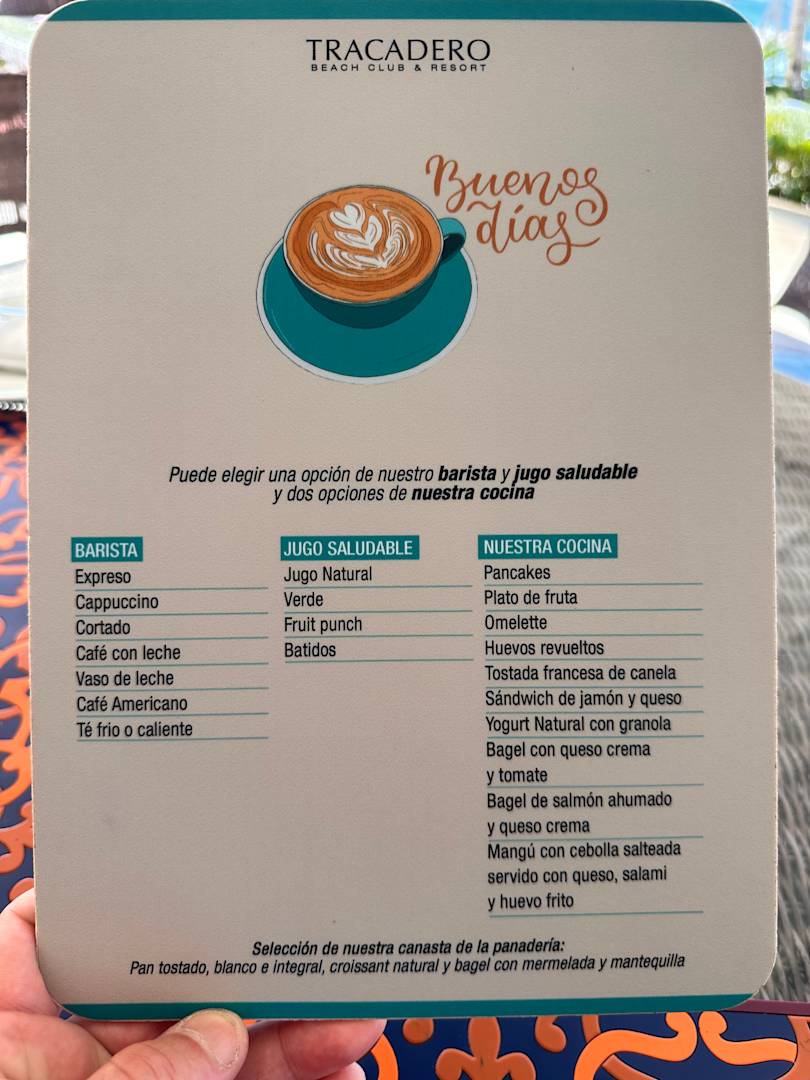 Karte für das Frühstück im Restaurant