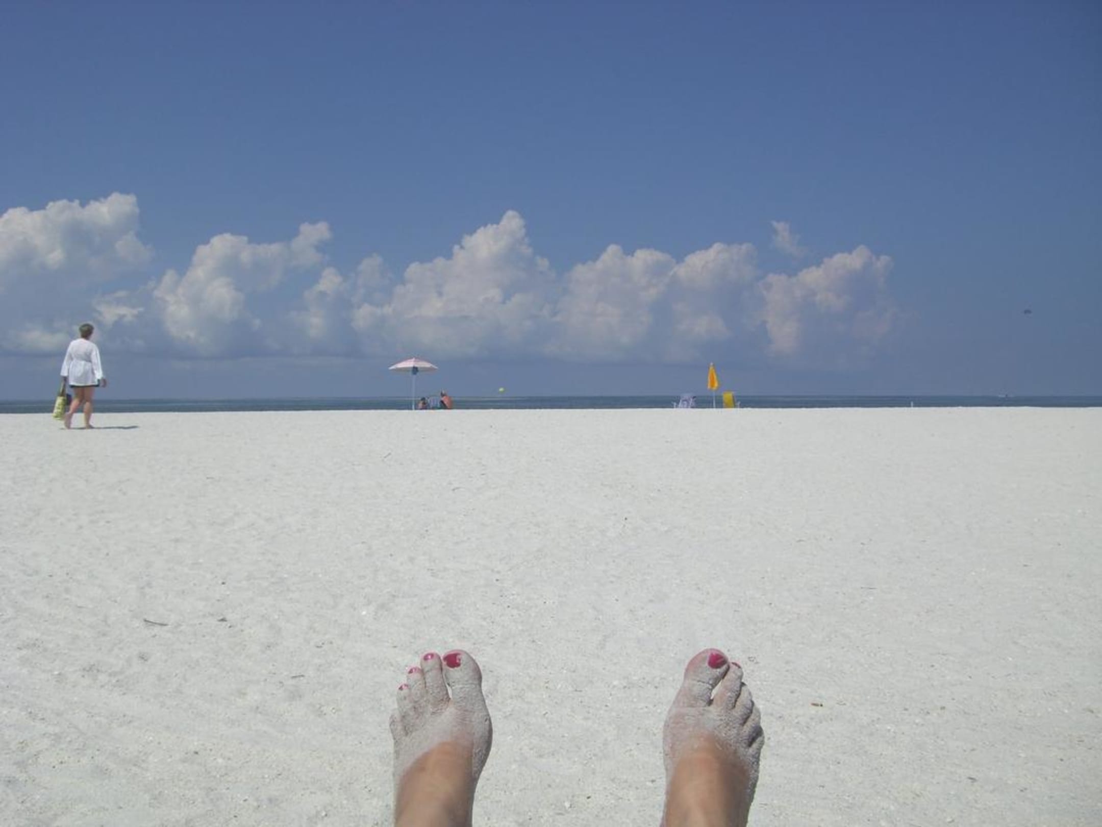 Auf der Liege vor dem Hotel am Strand.