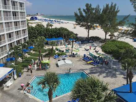 Blick auf den Pool und den Strand