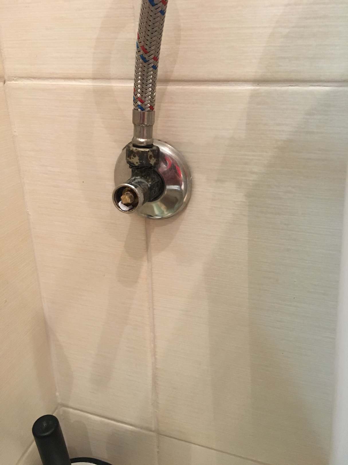 ZimmerAbsperrhahn der Toilette, 24 Stunden ohne Toilettenspülung, nachdem die wegen eines Defekts ausgebaut wurde