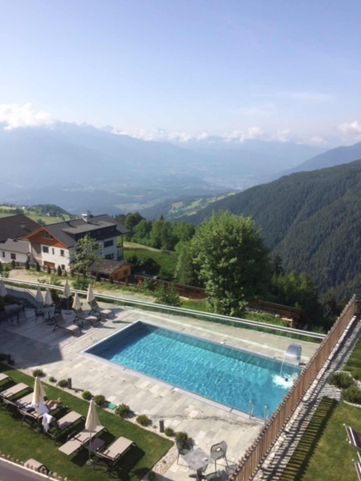 Sicht auf Pool und Tal vom 3. Stock aus.