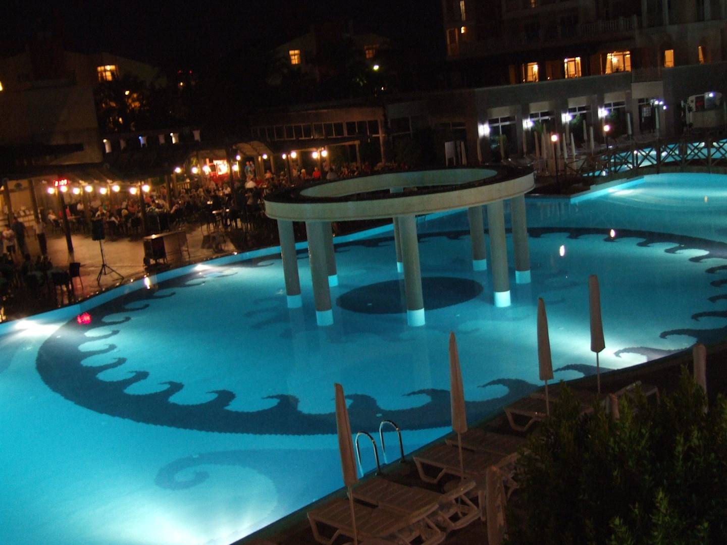 Blick von der Aussenterrasse oben auf den Schwimmin