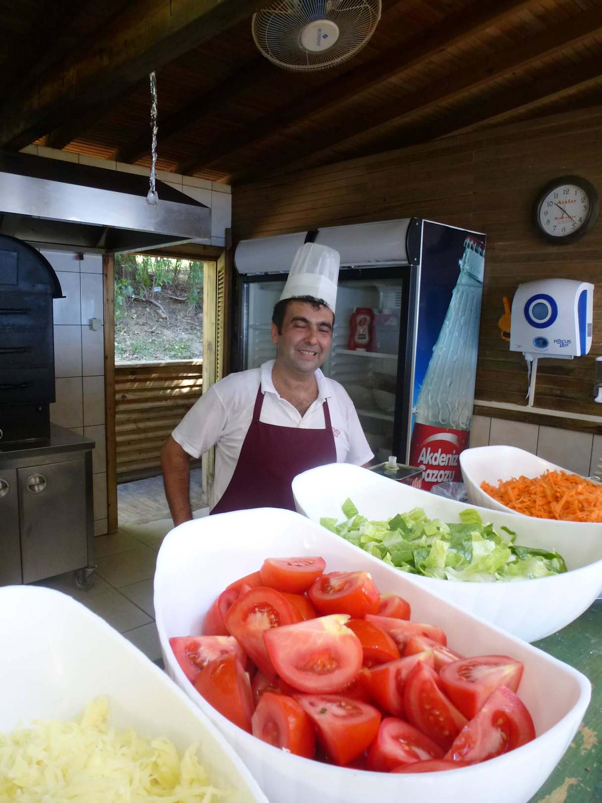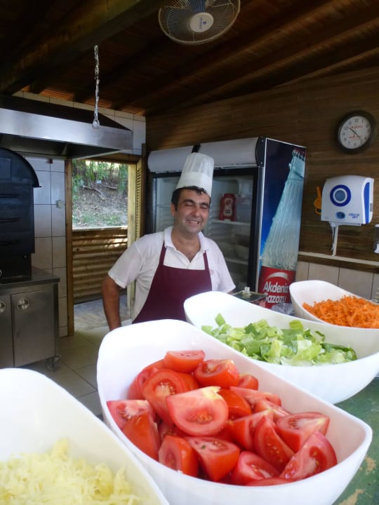 Trotz extremer Hitze immer ein lächeln und gute Laune.Gutes Essen zu Mittag an der Strandbar.