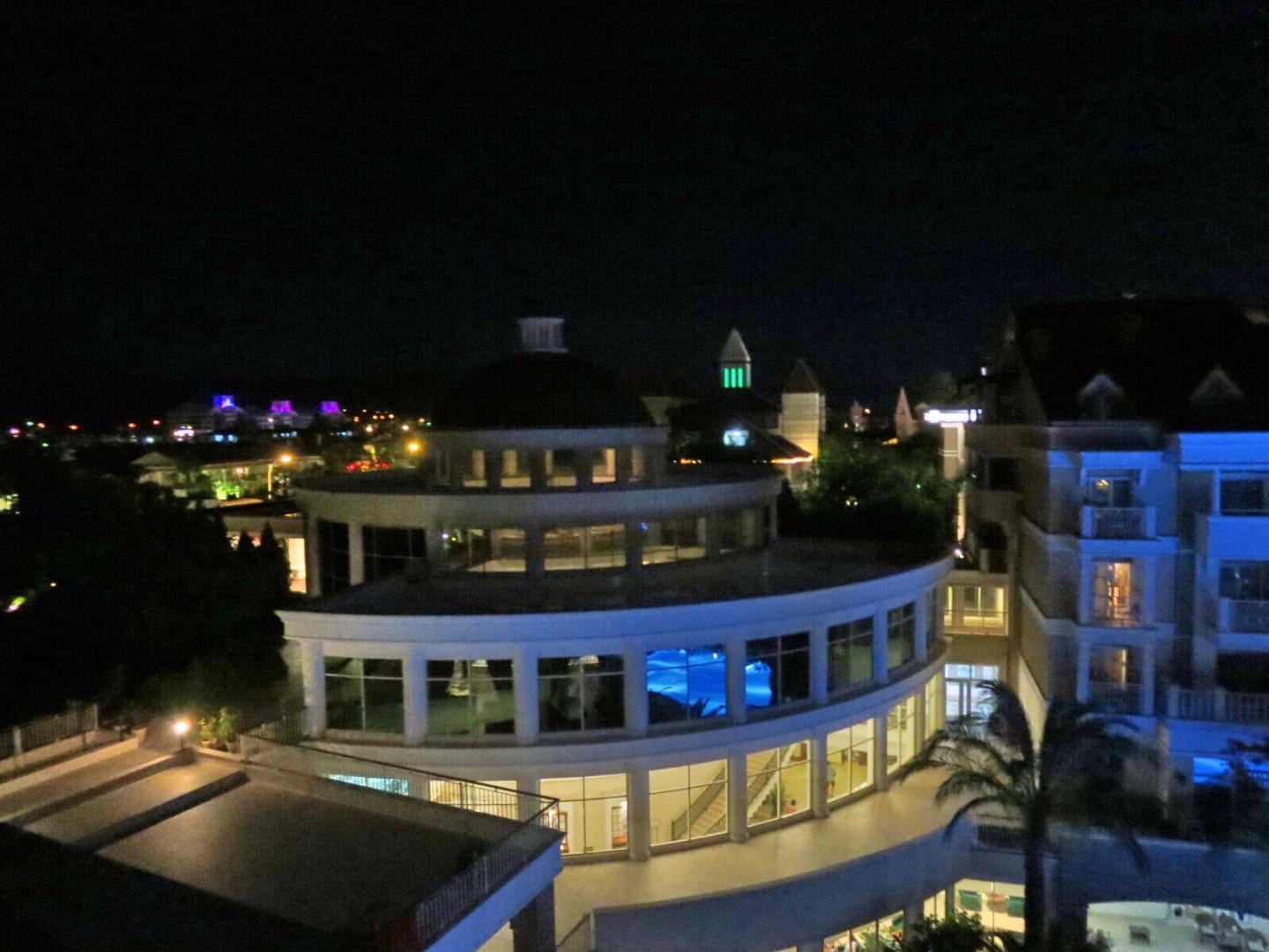 Blick auf die Rezeption bei Nacht