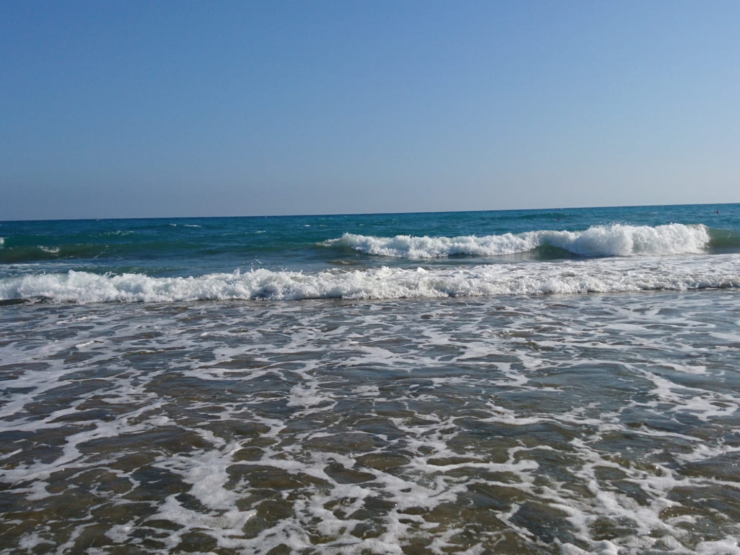 Das Meer aber Achtung Steine. Viele hatten Badeschuhe an.